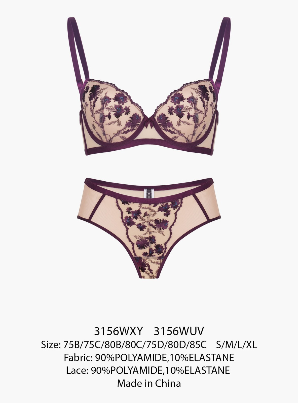 Комплект выполнен из качественного полиамида и эластана . Оформлен изящным цветочным кружевом. На тонких бретелях.